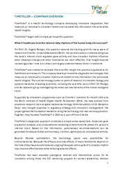 The regulatory path and resulting certifications have been developed by Dr. Benjamin Dose (COO and Co-Founder). TimeTeller GmbH has received numerous awards for its scientific and innovative approach and has been supported by renowned funding programmes. These include the Hamburg Start-up Award,the German Start-up Award, the Women TechEU and the Deutsche Gründerpreis.
